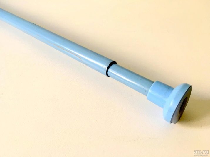 - Telescopic cornices (they are also called sliding). The peculiarity of these cornices is that they do not need special fastening. They have a unique telescopic design that allows you to stretch or reduce them to the desired length. In addition, at the ends of such holders are special rubber pads that protect the walls from damage and scratches.