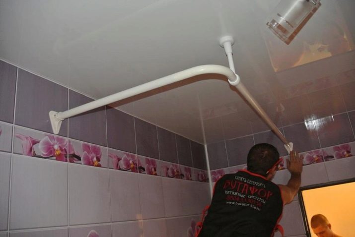 - Terms of Accommodation. Before choosing a model, you need to make accurate measurements of the bathroom. In particular, you need to know exactly the width of the canvas or the distance between adjacent and opposite walls on which the cornice will be mounted.