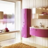 As already mentioned, the color scheme of bathroom cabinets is diverse. You can choose a product with a wood texture or stop on a film coating. Presented on the market pink, purple, green and other models of all kinds of midtones. The most popular are white and beige products. Minimalism lovers often choose gray furniture. There are in assortment and black cabinets.