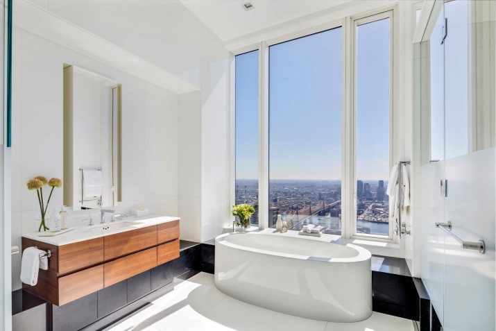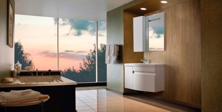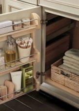 Cabinets allow you to maintain order in the bathroom. This is especially important for those who adhere to the philosophy of minimalism. Cosmetics, hygiene items, household chemicals, linen and other things are hidden from prying eyes behind the facades of furniture. This allows you to fully enjoy the aesthetics of the interior.