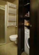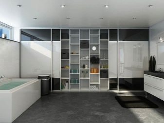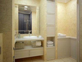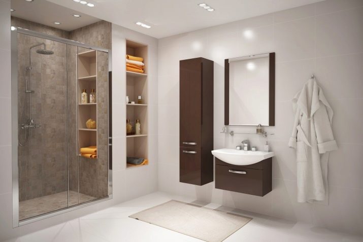If the bathroom has a niche, it can be equipped with a cabinet. You do not have to install side walls and a “roof”. Their function will be performed by the walls and ceiling of the room. This will save, and also increase the capacity of the structure.