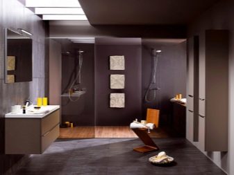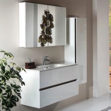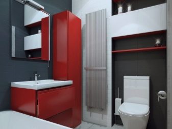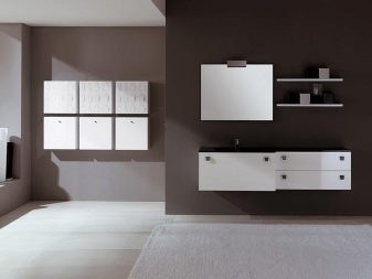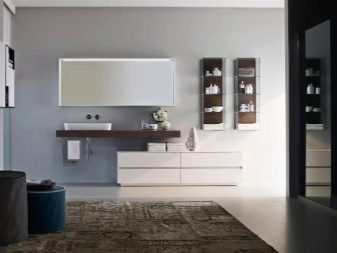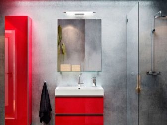 Such furniture can be matte or glossy. The colors are clear, usually cold (white, gray, black), although there are warm beige tones and bright shades (red, turquoise, orange). The concept of these areas assumes maximum functionality. Here, lockers are often equipped with lights, heated mirrors, a built-in thermometer, and clocks. Floor models are rare. Usually, cabinets and pencil cases are made suspended.