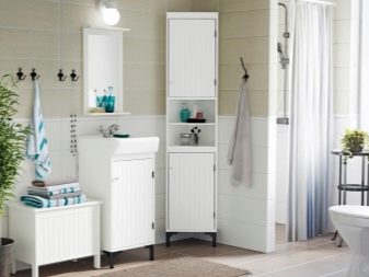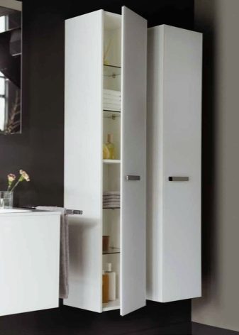 This is the name for narrow but tall lockers with hinged doors. For the bathroom, such products are ideal. They are quite spacious, but they do not take up much space. Like ordinary cabinets, such products are floor and wall, single and double.