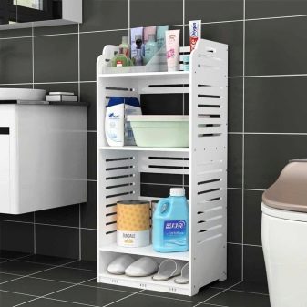 There are two options. Inexpensive plastic dressers are designed to store light things. Thin plastic is used in such products, so it can be deformed from heavy objects. In principle, gravity is not often stored in the bathroom, but for towels and bathrobes, for example, this option is quite suitable.