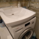 The third example demonstrates how the equipment will look in a very cramped bathroom, where there simply is no alternative to placing the device anywhere else except the sink. In a particular case, their combination looks quite correct - the sink does not protrude beyond the washing machine, and even the gap between them was minimized, so the wash basin is not raised so high.