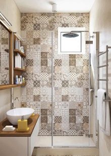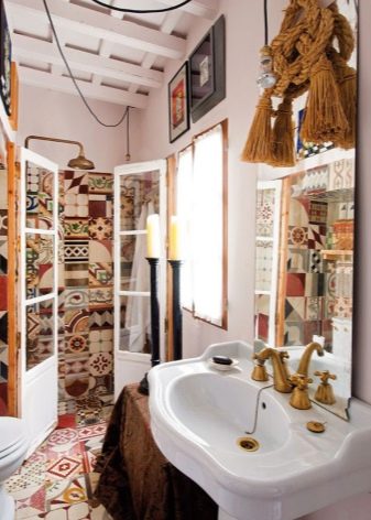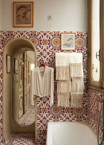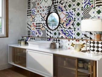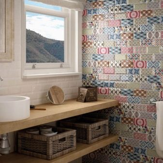 - Boho. It will be appropriate to use tiles with imitation patchwork as a bright accent in the wash area or in the accent wall decoration.