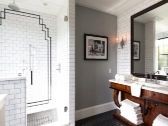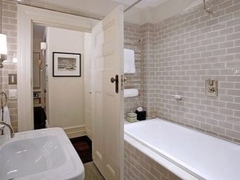 Scandinavian style involves decoration in gray or other cold colors, classic bathrooms can be decorated with white products with imitation of brickwork.