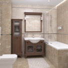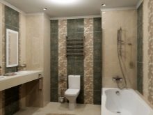 The best option for finishing a small bathroom is considered the acquisition of medium tiles. You can choose a square or rectangular shape measuring 20x30 cm. The rectangular shape of the tile will correct the space. If the tile is laid horizontally, the room will become longer. Vertical tiling will increase the height of the room.
