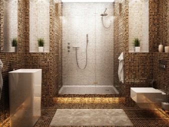 The main criterion for choosing tiles in the bathroom is the size of the products. For a large room, a tile of any size is suitable. When choosing tiles for a small room, you should be careful. For a small bathroom, it is not recommended to choose mosaic tiles. Visually, such a cladding will narrow the room even further. Large tiles will also make the room miniature, as the room will be divided into a couple of large geometric shapes. Small products, for example, with a size of 15x15 will also not work.
