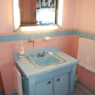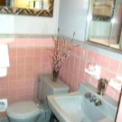 - Blue. Marine motifs in the bathroom are particularly attractive. Pink tile in perfect harmony with plumbing or other elements of the interior shade of the sea wave.