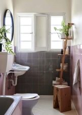 - Furniture in retro style fits perfectly into the raspberry bathroom. We are talking about a small multi-tiered table or cabinets made of wood with the effect of “aging”.