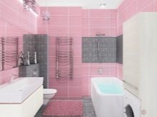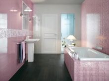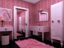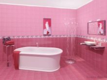 Also, when decorating a bathroom, many designers advise using tiles of various colors. For example, raspberry-colored furniture and tiles combine perfectly with other elements of light pink tones.