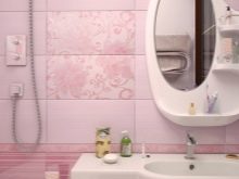 Pale pink tiles can be decorated with any pattern that matches the color of the furniture or sanitary ware.