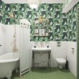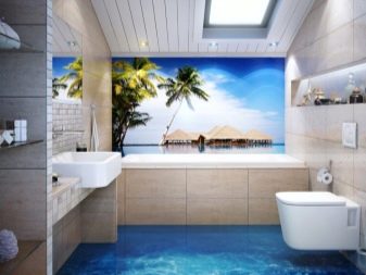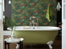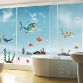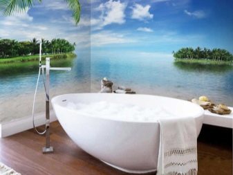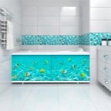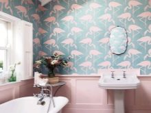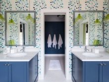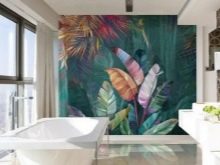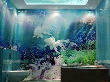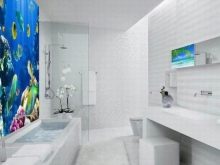 There are a lot of design options, because the range of products offered is very wide. The difference in colors and textures is truly huge. If there is a child in the house, you can choose the option of photo wallpaper with your favorite cartoon character, so that water procedures give even more pleasure.