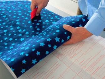 The part that is already glued is smoothed out with a felt spatula. After that, the paper substrate is disconnected, and the canvas is simultaneously smoothed. In the event that air bubbles remain under the film, this place should be carefully pierced with a needle. Rough areas are re-glued.