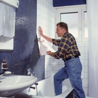 Before deciding in favor of finishing the bathroom with a self-adhesive film, you need to carefully study all the advantages and disadvantages of the material. The undoubted advantage is that it is waterproof. This means that the material is able to protect the walls from moisture. Some people prefer to replace washable vinyl wallpapers with foil.