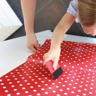 In general, such a film is universal. She can paste over both walls and furniture. In addition, the material is used not only at home, but also quite suitable for use in public places. It is often found in swimming pools, kindergartens and clinics.