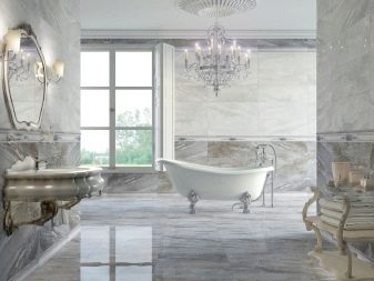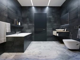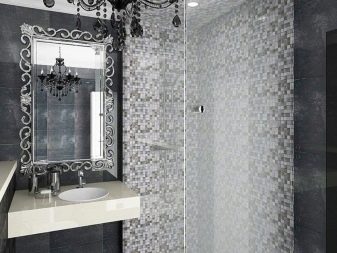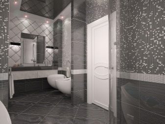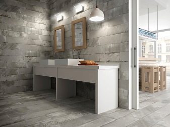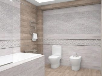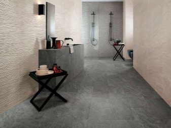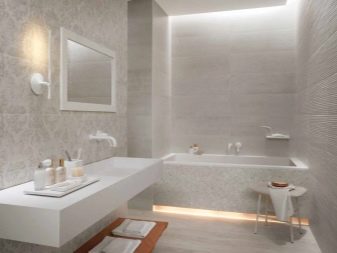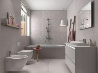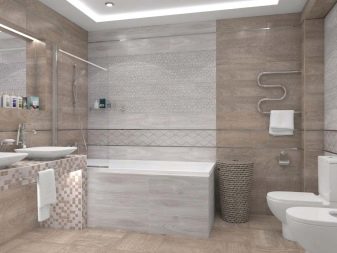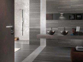 Design experts say that the main part of the room should be covered with light gray tiles. Dark gray tones are used for floors or at the bottom of walls. In extreme cases, narrow darker stripes in the middle are allowed. To simplify the choice, it is worth giving preference to ready-made collections, which are already initially composed of agreed elements. More experts suggest focusing on combining such varieties of tiles, such as: