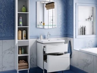 If it comes to the purpose of the cabinet, it should be noted that they are used for the hidden installation of the washing machine or if they want to hide pipes under the sink. Small models are used for cosmetics and hygiene products, and larger products are used to store household chemicals, towels, bathrobes.