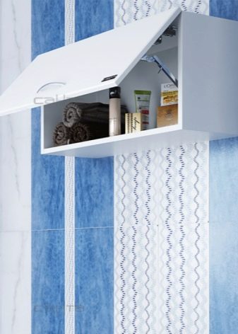 - The horizontal hinged structure with a minimum depth is designed to store small things. This model only protrudes slightly from the wall and does not take up much space. It is also good because everything you need is literally at hand.
