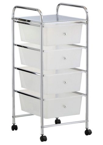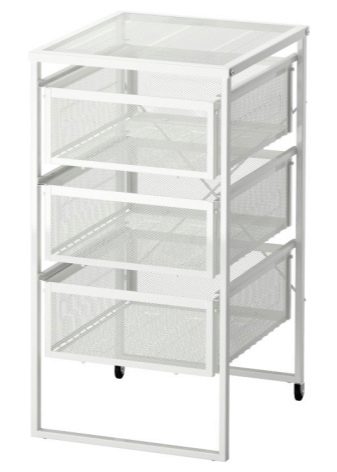 - Open metal cabinets with plastic drawers are offered for the bathroom by IKEA. Furniture mounted on casters is mobile; it can be moved to any place at least every day. The design is elegant and transparent, this makes it possible to maintain volume and airiness in the room itself.