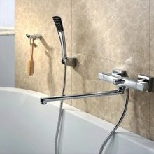 The height of the nozzle is determined by the distance from the base of the mixer to the hole for the discharge of water. For the shower, structures with an elongated spout and a low spout are most often used. But if you plan to use them also for the sink, then this is not too convenient. The length of the attached hose is determined by the parameters of the bath, the growth of users.