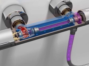 Depending on this proportion, this or that temperature is set. Accordingly, when the ratio changes, this temperature will change very quickly. Mixers can be controlled with a single lever or a pair of valves.