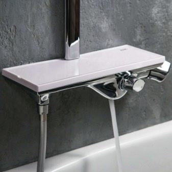 The built-in device allows you to hide eyeliners and connection points. However, putting it harder. And the repair in case of an accident will be complicated. Placing on the side of the bath is possible only on acrylic and elite stone structures. Standing stationary faucets are rare, and only professionals can install them.