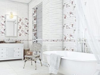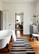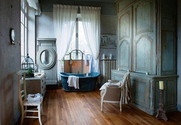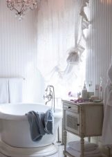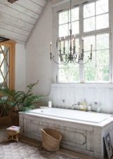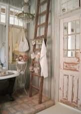 Walls can be painted with painted wood. Besides, Ceramics is relevant, or even its combination with a plank texture, plaster or white paint. Doors leading to the bathroom should give a touch of antiquity, they should be scuffed, rough. The vintage pen will perfectly convey the atmosphere you need.