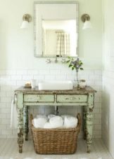 In the interior of the Provencal style every element is thought out thanks to which it is possible to create an atmosphere of perfect order. Each thing has its own place, even jars with shampoos and gels are combined in color with towels or other interior textiles. It is appropriate to use wicker accessories (for example, small baskets).