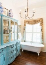 If the apartment’s footage does not accurately convey the Provencal atmosphere, You can adapt the style for a specific bathroom. Instead of a free-standing bath, a regular oval or rectangular one is installed (if you want to sheathe it with tiles). The boiler, the washing machine are masked using doors or niches. If there is enough space in the bathroom, you can put in it a massive chest of drawers with drawers, above it - a clock.