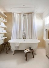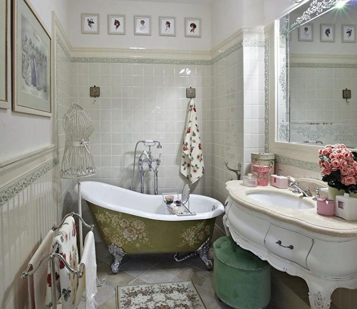 Faucets, coasters, shelves, towel and toilet paper holders should echo the old times. All elements must be in harmony with each other. If a floor hanger is bought in the interior, its shape and design should be suitable for the existing elements of arrangement.