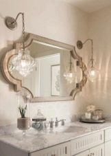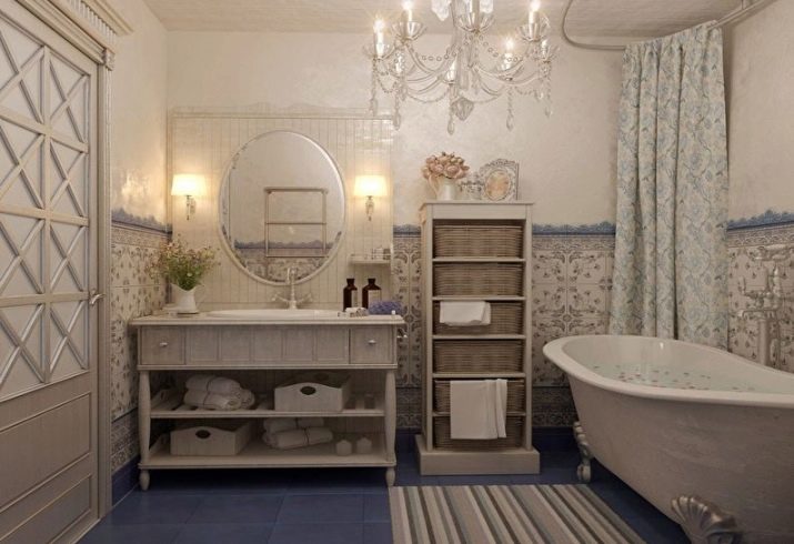 Provence style bathroom lighting creates a feeling of comfort and peace. The light should be soft and diffused, the use of lamps with a modern design is excluded. In priority wrought iron chandeliers, candelabra, as well as antique models with candlesAuthentically fit into the interior of Provence.