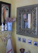 Successfully emphasize the right atmosphere rare bottles, boxes and soap dishes. Despite the fact that a lot of them should not be, design should be approached responsibly. The Provencal-style mirror can be large, decorated with a wooden frame with elaborate carvings. It’s great if the baguette seems old.