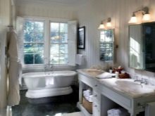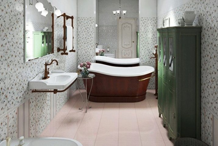 Every detail of the interior should indicate a certain era. At the heart of the concept is the creation of a single room for washing and relaxing.. Sharp zoning of the space is excluded, the use of matte textures, the selection of natural finishing materials are a priority. There is completely no demonstration of modernity here: in such bathrooms there is no place for technological showers.