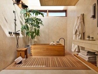 Simplicity, asceticism, rigor, lack of pretentiousness - this is all about the interior of the bathroom in the style of the Land of the Rising Sun. Even the color scheme is muted here:
