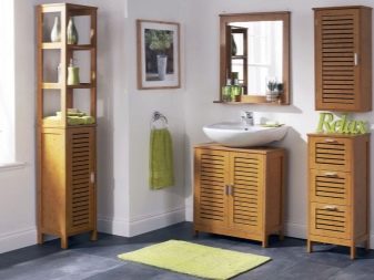 - Plumbing Products should be streamlined.Materials for their manufacture: stone (imitation can be used), moisture-resistant concrete, specially treated wood. Faucets, door handles, hooks, pipes are better to choose from copper and brass, ornate and retro style,