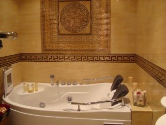 To begin with, we note that the Egyptian design of the bathroom requires a large room, because it has a lot of decorative details.