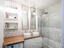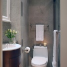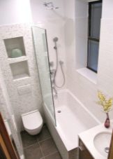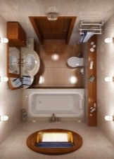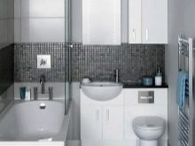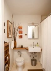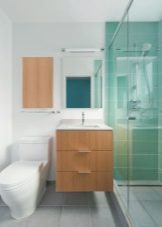 If you decide to leave a separate bathroom and bath, then you need to place a small sink in the restroom. All pipes are best closed with a decorative box, and above it you can place a cabinet or shelves. This will allow more efficient use of usable space.