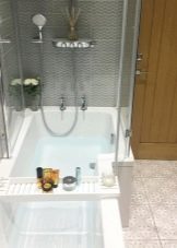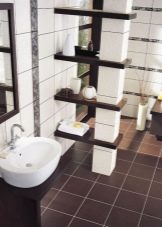 - The interior of a small bathtub in white-brown color looks stylish. The combination of two contrasting colors will make the design more vivid and interesting.