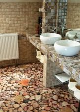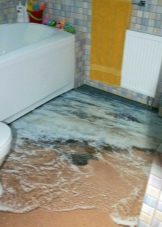 As for the walls, tiles will be the best option for floor design. There are special models with anti-slip coating. Another stylish and practical solution is the bulk floor. Such floors have a wide range of design options. There are unusual and bright models with 3D-drawings.. Moreover, these materials are excellent for installing underfloor heating, which is especially true for cold winters.