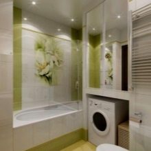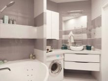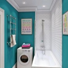But in the bathroom you can place more overall cabinets, as well as a washing machine. Thus, you will get a cozy and functional space.