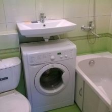 - You can install the machine in one of the free corners. You can hang shelves or a cabinet above it. This solution will create an additional place to store various little things.