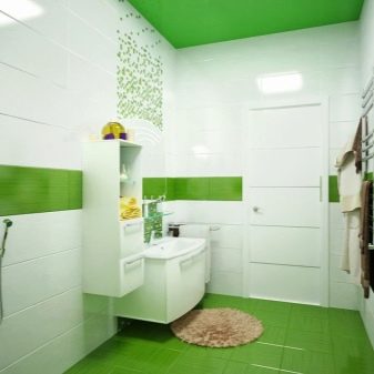 - False ceilings. Such a ceiling requires special installation.It is well suited for bathrooms because it is not afraid of moisture. Moreover, suspended ceilings will help protect the room from flooding from above. Stretch ceilings look attractive due to their shiny glossy surface.