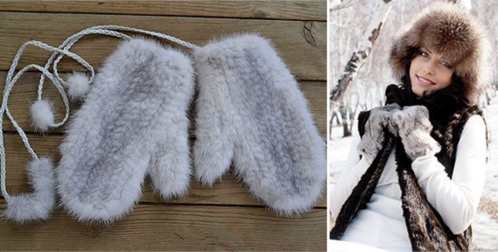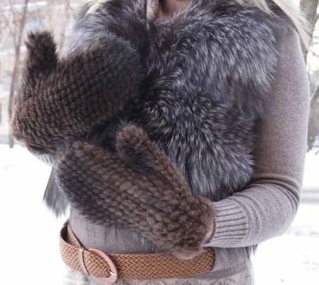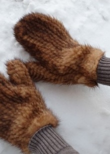 Models made from a whole mink skin are voluminous and do not fit the hand very well, because in this case it is the whole mink skins that are used, and not what remains from the production of fur coats. Similar products will be significantly more expensive. But they have an important advantage - they are much warmer than knitted counterparts.