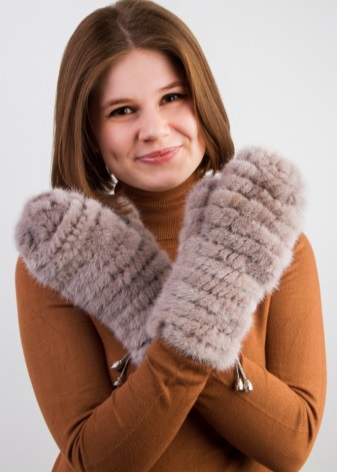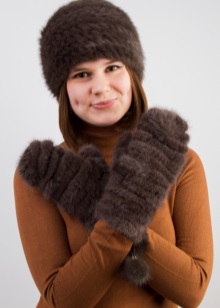Mittens made of the same fur are best suited to a fur coat, fur coat or sheepskin coat. Then the image looks very harmonious and holistic. The same can be said when the mittens are matched to a hat or scarf. For example, mittens made of thin strips of knitted mink are perfect for a mink hat.