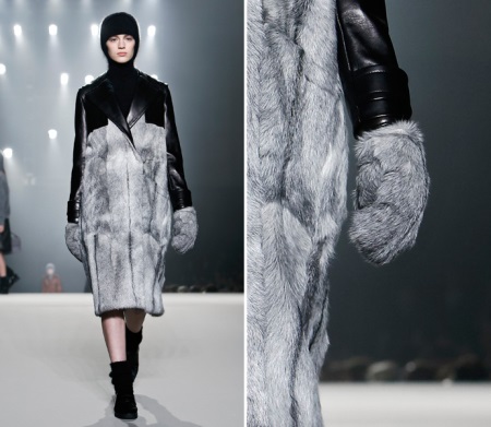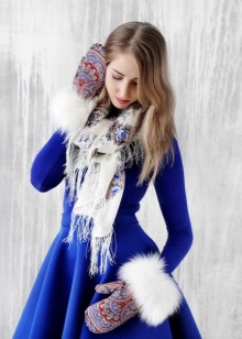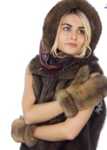 Mittens can be worn on a fur vest, a jacket with a fur edge, and a down jacket. Ideally, all fur elements in one image should be made of the same furs. This image looks as solid and harmonious as possible.