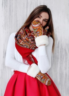 Leather is not the only material with which fur is combined. One of the most fashionable and stylish companion materials are painted Pavloposad shawls. They can be combined with shorthair fur, such as mink. An image where there is a real Pavloposad shawl, for example, draped over a black fur coat or nicely tied on a head, will look even more interesting.