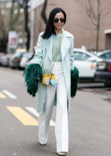 If the mittens are very voluminous, bright, fluffy, noticeable, then the rest of the clothes should be made in a fairly simple and concise style. And the color is best to choose a neutral one. Then the mittens will become a bright, noticeable accent in any look.