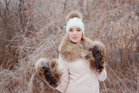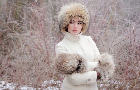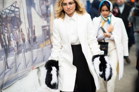 Snow-white fur mittens are a universal accessory that will add sophistication and luxury to any outfit, especially if it is a black fur coat. Soft, fluffy mittens go well with an elegant hat with white pompons.